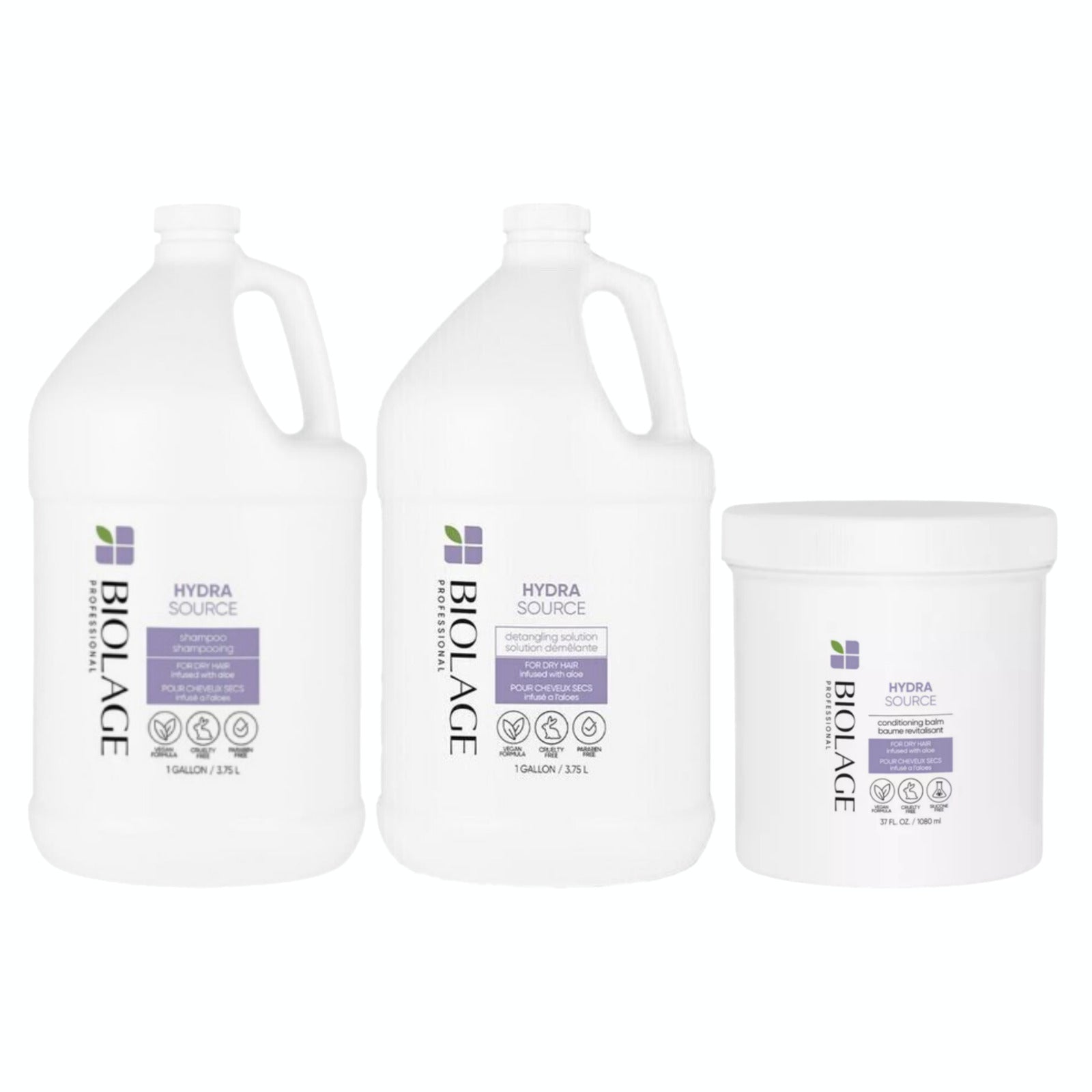 BIOLAGE Hydrasource Shampoo/Detangler Gallon/Conditioning Balm 37oz Jumbo Deal